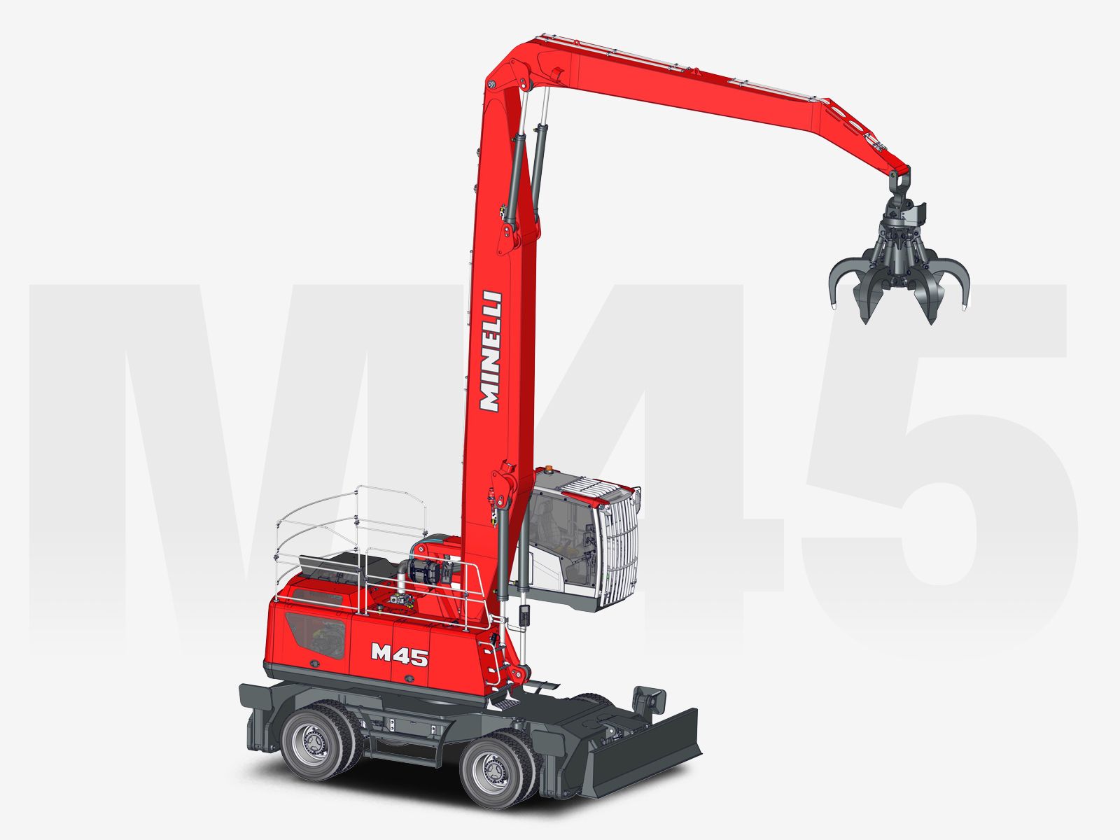 Material Handler M45 je robustní a vysoce stabilní stroj navržený pro manipulaci s velkými objemy materiálu v náročných průmyslových podmínkách. Díky silnému motoru, odolné konstrukci a vysoké variabilitě dosahu i nosnosti je ideální pro nepřetržitý provoz v přístavech, hutích, recyklačních provozech i na skladech sypkých materiálů.